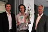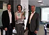Adm. dir. Andreas Hatlo (i midten) mottok utmerkelsen på vegne av sine spreke ansatte i Rambøll Oil and Gas. Til venstre: Atle Hunstad, generalsekretær i Norges Bedriftsidrettsforbund. Til høyre: Einar Røsås, regiondirektør, NHO Vestfold.