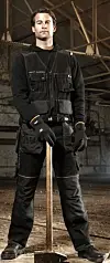 Beltegangene har stor vidde, og de er mange, slik at ryggen får god stabilitet når verktøy er festet til plagget. Lommene er belgformede og bygger utover og vekk fra kroppen for å øke funksjonalitet og komfort. Knappen på tommestokklommen er avtakbar og kan derfor fjernes fullstendig i visse situasjoner for å unngå for eksempel oppskraping. Det passive sikkerhetselementet, refleksstripene, er på plass på ytterplaggene.