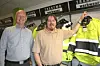 – HMShuset er et utmerket utstillingsvindu for våre produkter, sier daglig leder Pål Branderud (t.v.) i Tranemo Workwear AS. Her sammen med Jonny Skogholt i HMShuset. (Foto: Jan Tveita)