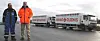 Klubbformann Petter Grønås (t.v.) og HMS-rådgiver Per Even Pedersen ved Hennig-Olsen Is i Kristiansand. (Foto: Jan Tveita)