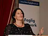Forsker Anette Harris fra Uni Helse snakket engasjert om sykefraværsarbeid. (Foto: Jan Tveita)