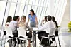 Før var vegg-til-vegg-tepper, velurgardiner og store polstrede sofaer ”in” på kontoret. Dagens mote dikterer stilrene rom med glatte overflater i betong, glass og stål, materialer som ikke gir mye plass til tekstiler.