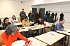 Stemningen er god i klasserommet hver mandag når kursdeltakerne har teoriundervisning. Bakerst i klasserommet står (f.v.) koordinator Sveinar Sæterberget, markedskoordinator i NAV, Morten Frantzbråten og lærer Eva Julie Løken .