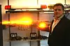 Kristian Kolnes demonstrerer ny og strømbesparende led-belysning: – Led gir bedre varsling til medtrafikanter fordi denne er mer synlig på lengre avstander, sier han. (Foto: Jan Tveita)