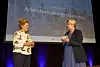 Lise Moe Kristiansen mottar Den Norske Arbeidsmiljøprisen fra arbeids- og inkluderingsminister Marte Mjøs Persen.