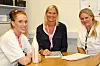Marit Anette Berger (i midten) er jordmor ved bedriftshelsetjenesten på Ahus. Her deltar hun i en trepartssamtale om «Gravid i jobb» sammen med (t. v.) sykepleier Linn Øverbye Larsen og (t. h.) seksjonsleder Ida Ljungberg. (Foto: Jan Tveita)