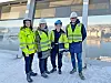 Fra venstre: Mari Haave Sveen, fagsjef arbeid mot arbeidslivskriminalitet i Kultur- og idrettsbygg i Oslo, Eli Grimsby, direktør i Kultur- og idrettsbygg, Julie Olstad, elektrolærling i GK Norge, og Vegar Andersen, byråd for næring og eierskap. (Foto: Kultur- og idrettsbygg)