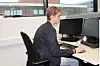 Å sitte og arbeide i en slik stilling i flere timer, er ikke bra for helsa. (Foto: Jan Tveita)