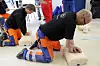 Hvert sekund teller dersom en kollega rammes av plutselig hjertestans på jobben. Her øver ansatte i Skanska på brystkompresjoner. (Illustrasjonsfoto: Jan Tveita)