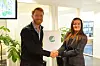 Her får Wenche Holm i Sodexo overrakt diplomet fra Bjørn Olav Aarø Strandli i Miljømerking Norge. (Foto: Alexandra Enger)