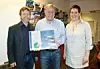 Fra venstre Tormod Lien fra Miljømerking, adm.dir. Jan Erik Pettersen og markedssjef Ann-Kristin Sønstelie fra Grøset er stolte mottakere av sertifikatet. (Foto: Grøset)