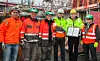 Sertifikatene ble nylig overrakt på boligprosjektet Gartnerløkka på Økern i Oslo. (F. v.) anleggsleder Eirik Birkeland Nikolaisen, verneombud Dag André Engebråten, verneleder Caroline Karlsen, adm. dir. Dag Andresen, revisjonsleder Arne Skjelstad fra TI og hovedtillitsvalgt Bjørn Markeng. (Foto: Veidekke)