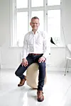 Fysitoterapeut Frode Skretting har drømt å utvikle sin egen stol i 16 år. I samarbeid med tjenesten for strategisk designrådgivning i Innovasjon Norge er drømmen realisert. (Foto Minna Suojoki)