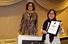 Statssekretær i ASD, Christel Kvam (H) overrakte prisen til en strålende fornøyd Mette Bugge. (Foto: Tora Herud)